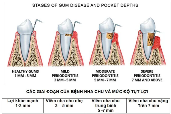 - Tụt lợi, răng bị lung lay do không còn phần nướu bao bọc, trường hợp nặng hơn bệnh nhân có thể bị mất răng
